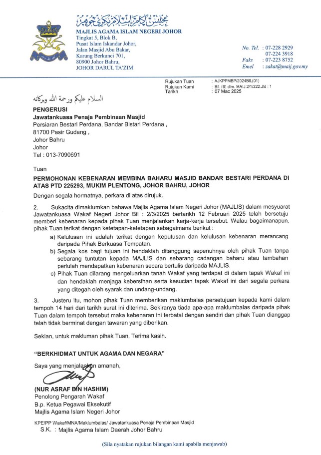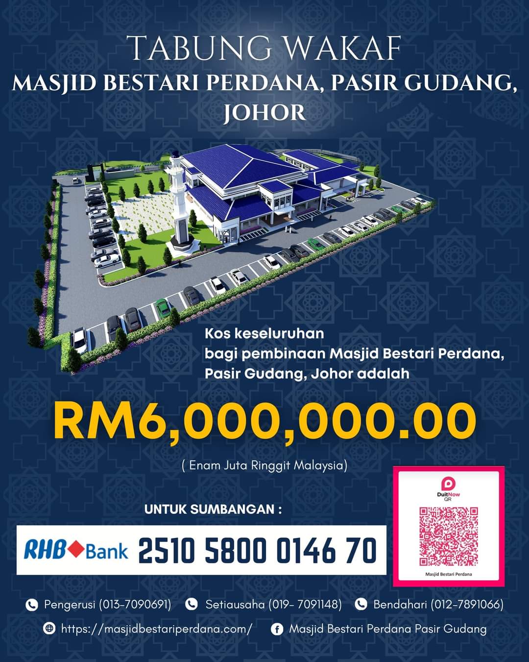 Projek yang akan dibangunkan di atas tanah wakaf berkeluasan 5 ekar ini (PTD 225293) akan memuatkan sebuah masjid yang lengkap untuk kegunaan orang ramai. Ianya boleh memuatkan kira-kira 1500 jemaah pada satu-satu masa.